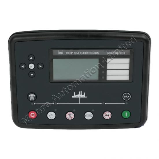 The Deep Sea DSE7320 MKII allows the operator to start and stop the generator, and to transfer load to the generator manually or automatically. It also monitors engine status, indicates faults, and automatically shuts down the engine if required.