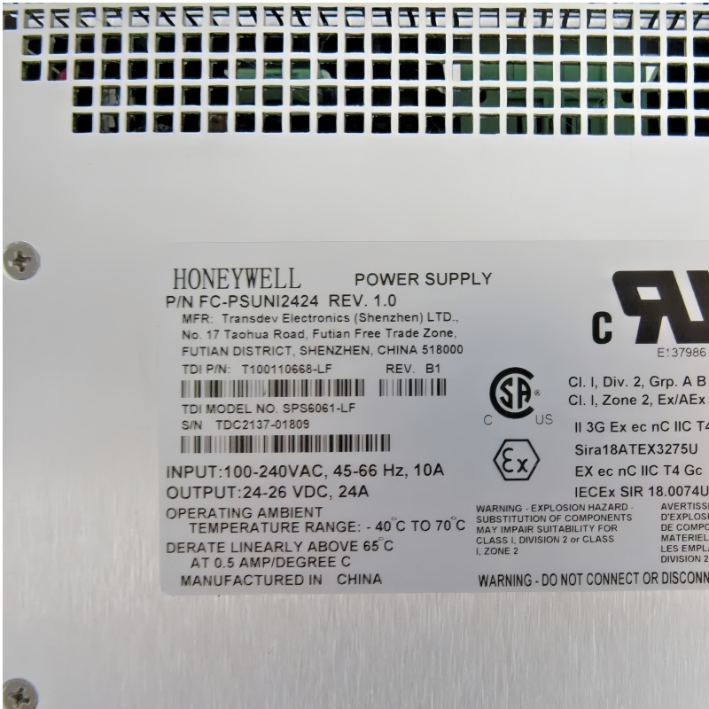 The Honeywell FC-PSUNI2424 is a Power Supply Unit (PSU) designed for industrial automation systems |