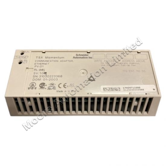 The Schneider 170ENT11000 Ethernet Communication Adapter is an industrial Ethernet interface module. It is widely applied in manufacturing automation, factory equipment networking, process control, energy and power systems, material handling and packaging machinery, and industrial network integration for smart factory and industrial Ethernet communication applications.