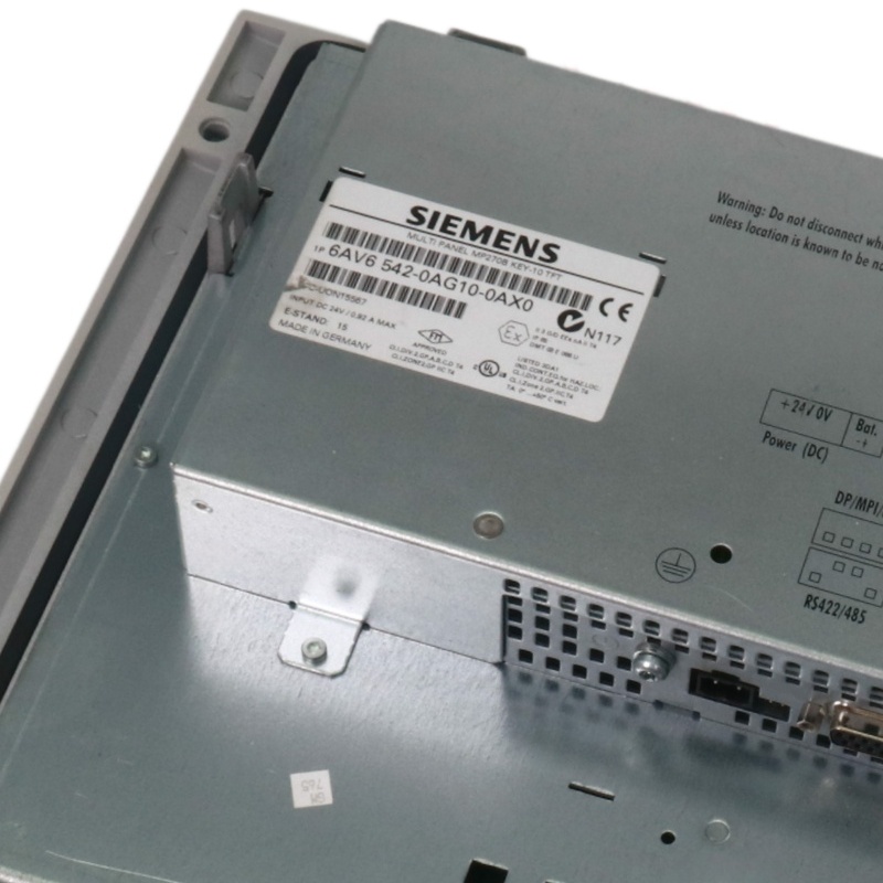 The MP270B multifunction keypad panel, part number 6AV6542-0AG10-0AX0 from Siemens, features a 10.4-inch TFT display. This device includes a resolution of 640 × 480 pixels and a color display.The color display grants improved graphics and visibility for various applications.
