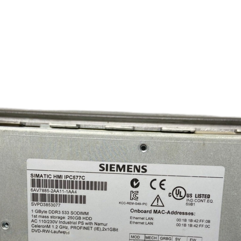 The SIEMENS 6AV7885-2AA11-1AA4 HMI (Human-Machine Interface) is widely used in industrial automation for equipment monitoring, data acquisition, and operational control. It is commonly applied in industries such as machinery manufacturing, food and beverage, pharmaceuticals, chemical, energy, and water treatment.
