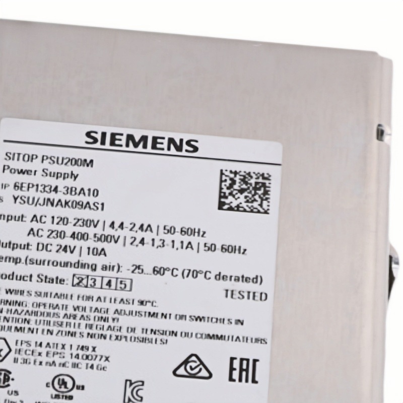 The Siemens 6EP1334-3BA10 power supply is designed for use in industrial automation and control systems. It provides reliable and stable DC voltage for devices such as PLCs, sensors, and actuators. This power supply is commonly used in industries like manufacturing, automotive, material handling, and energy.