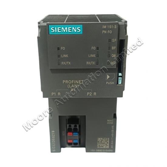 The Siemens 6ES7151-3BB23-0AB0 is an interface module from the SIMATIC DP series, specifically designed for use with the ET 200S system. It features two integrated PROFINET FO (Fiber Optic) interfaces with a 2-port switch, providing high-speed data transmission and robust network connectivity. The module supports a maximum of 63 peripheral modules and is capable of handling PROFIsafe modules for safety applications.