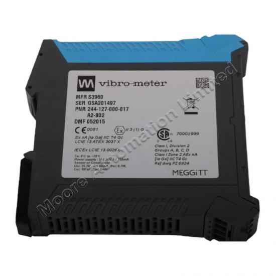 The VIBRO METER GSI127 244-127-000-017 A1-B02 Galvanic Separation Unit is primarily used in vibration monitoring and protection systems for rotating machinery, providing electrical isolation between circuits to prevent interference and damage. It is widely applied in power plants, oil & gas, chemical processing, marine propulsion, and large industrial machinery.